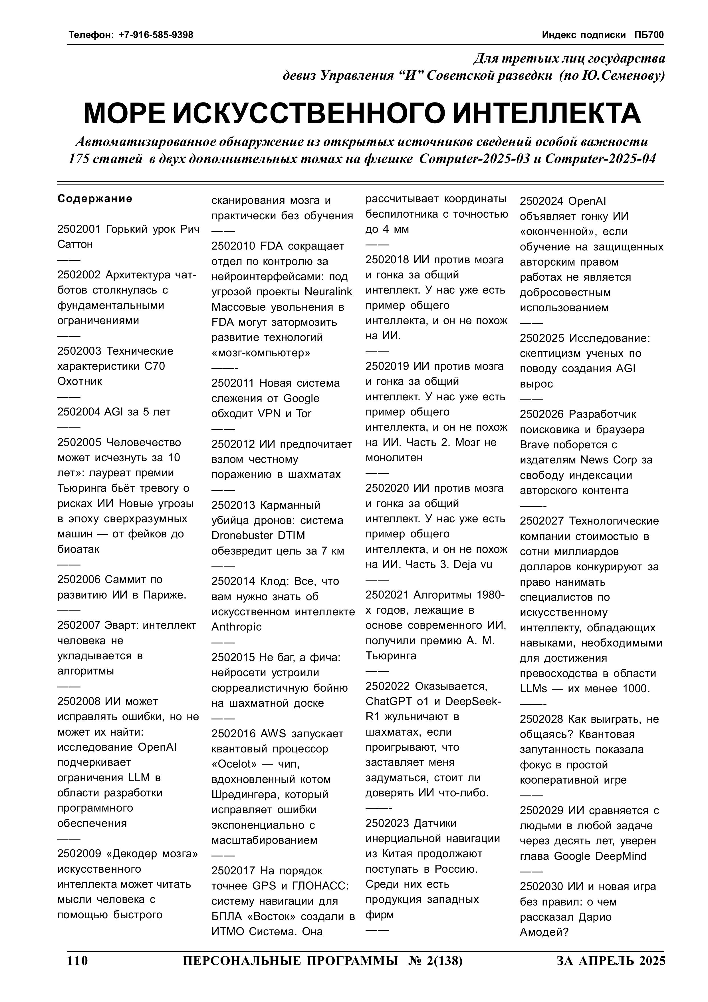 МОРЕ ИСКУССТВЕННОГО ИНТЕЛЛЕКТА Содержание 2025 год 2 номер 110 страница
