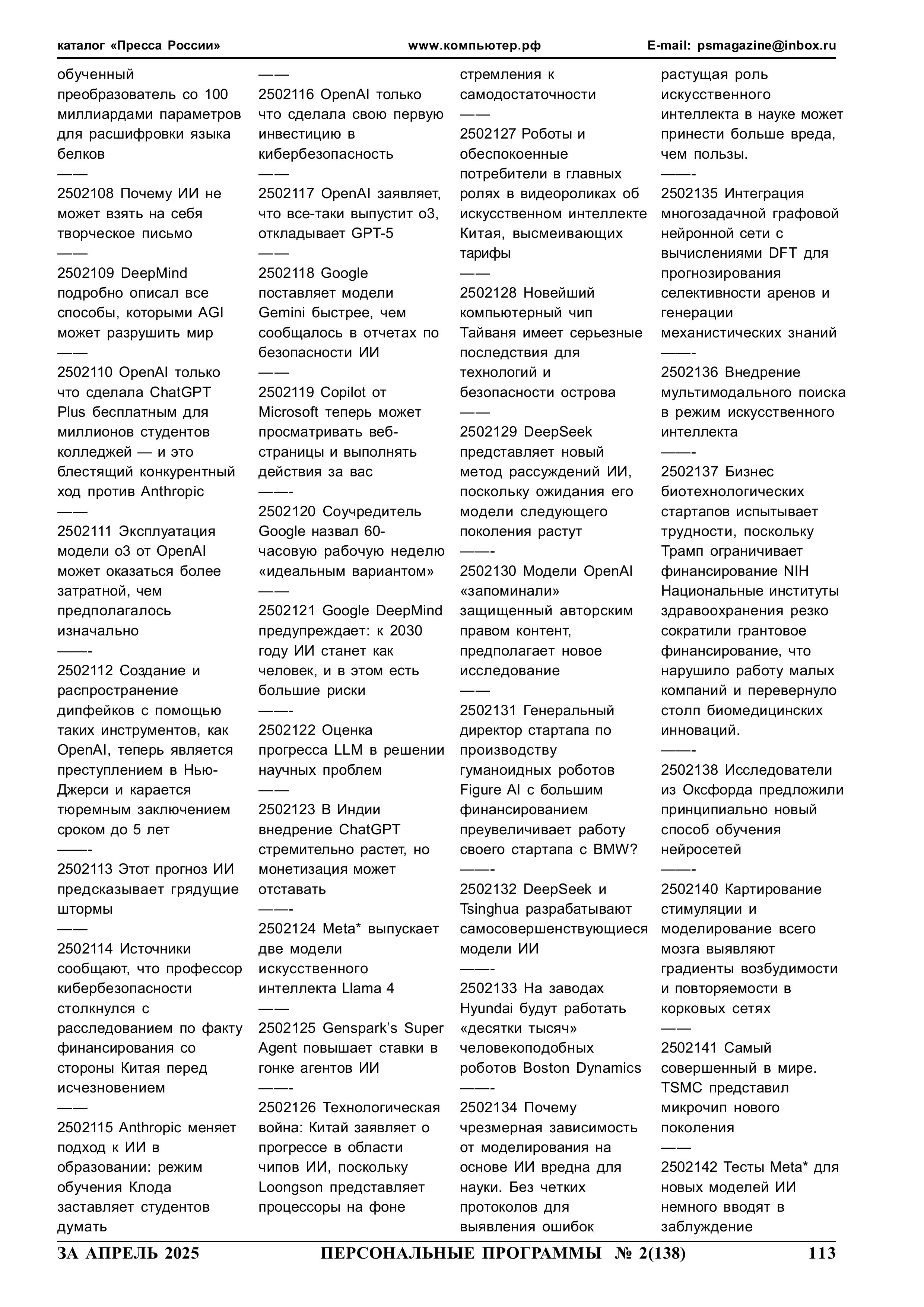 МОРЕ ИСКУССТВЕННОГО ИНТЕЛЛЕКТА Содержание. Статьи 108-142 2025 год 2 номер 113 страница