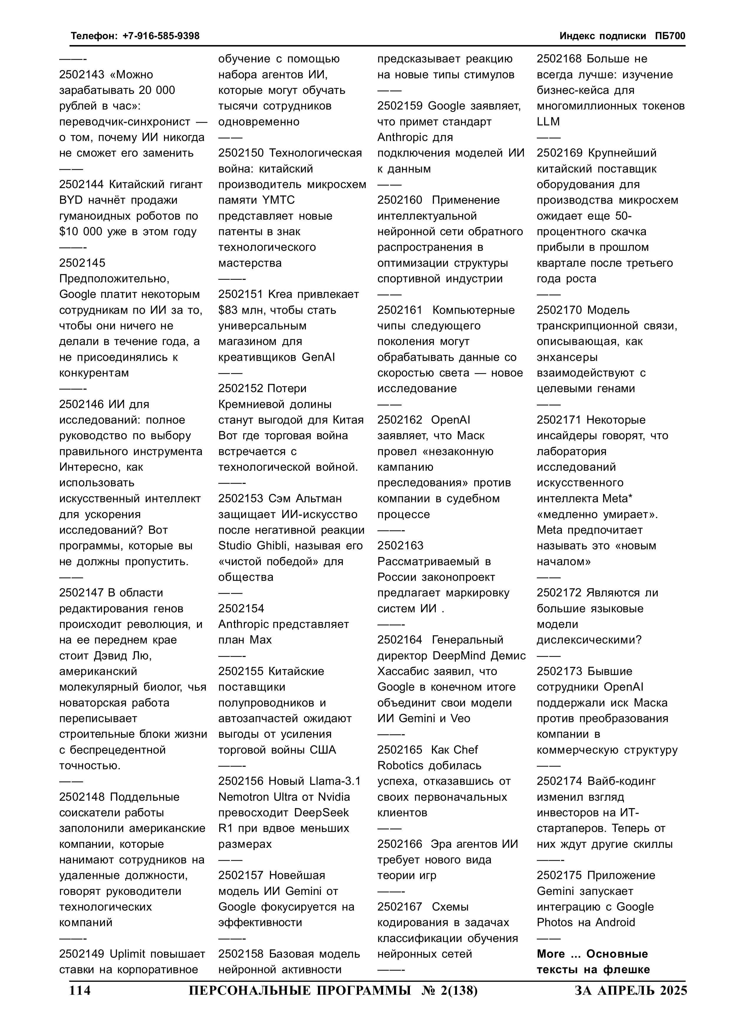 252114 yyNppp [ггNстр] Журнал Персональные программы на флешке 2025-04-30