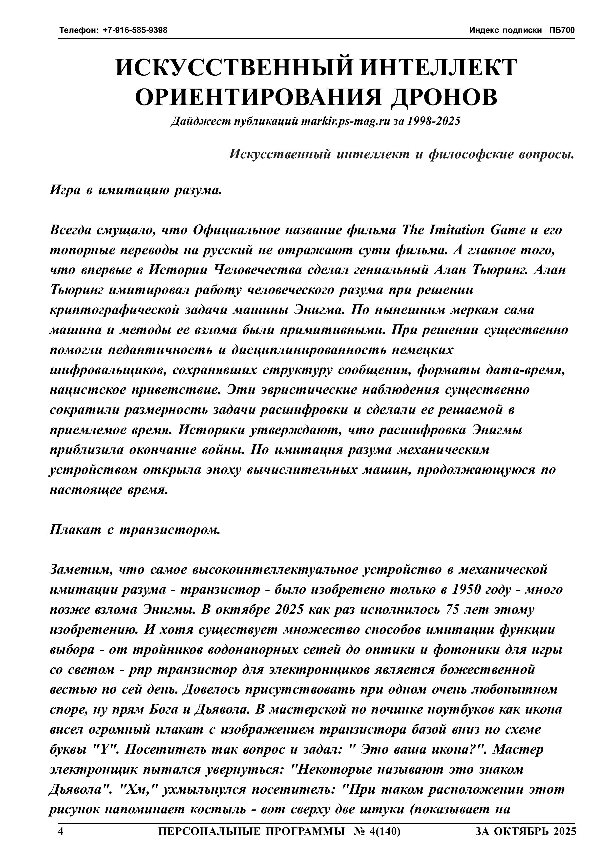 Журнал Персональные программы на флешке 2025 год №4 стр.004 Искусственный интеллект и философские вопросы