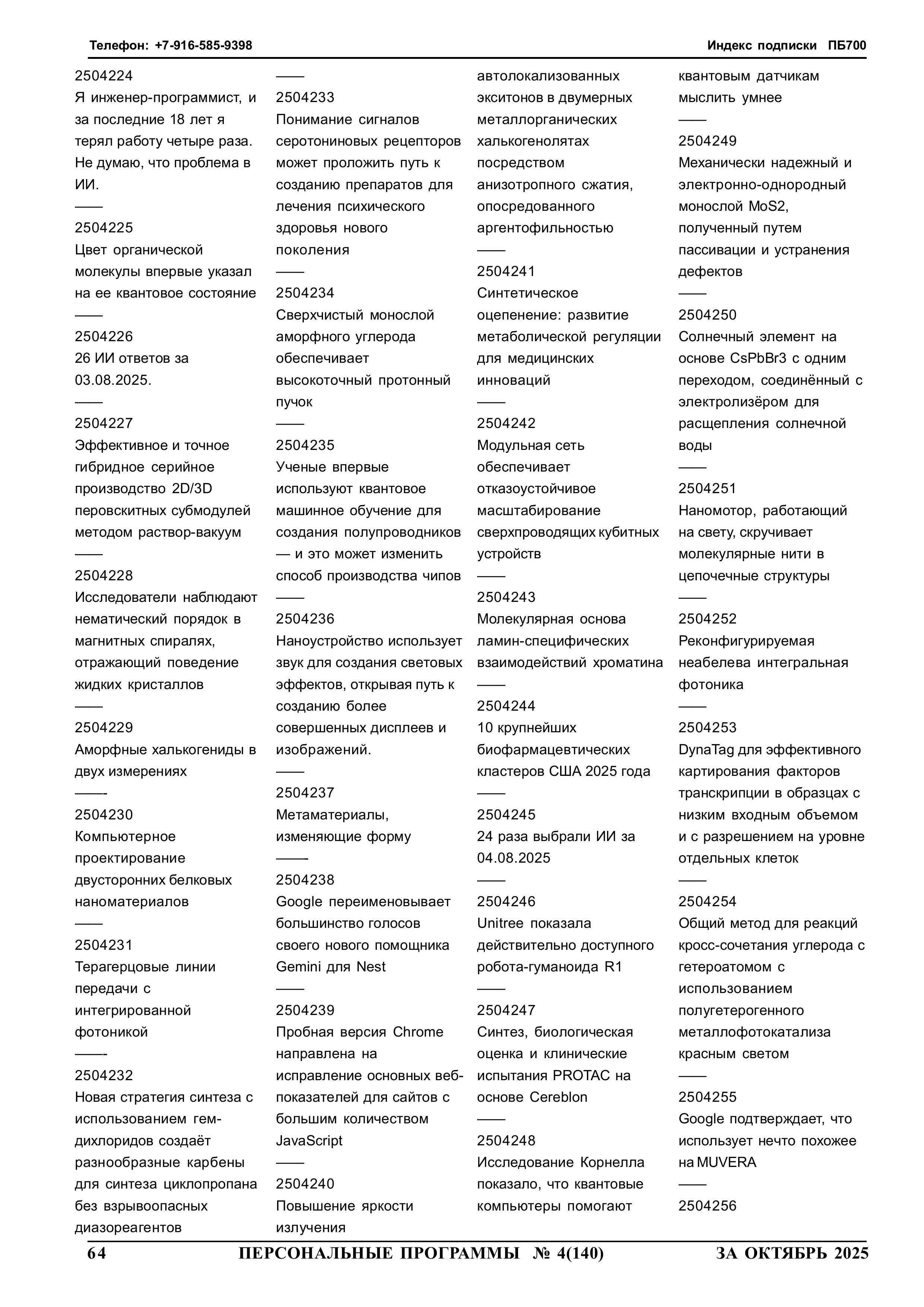 254064 yyNppp [ггNстр] Еженедельный журнал Персональные программы. Компьютер на флешке 2025-07-30