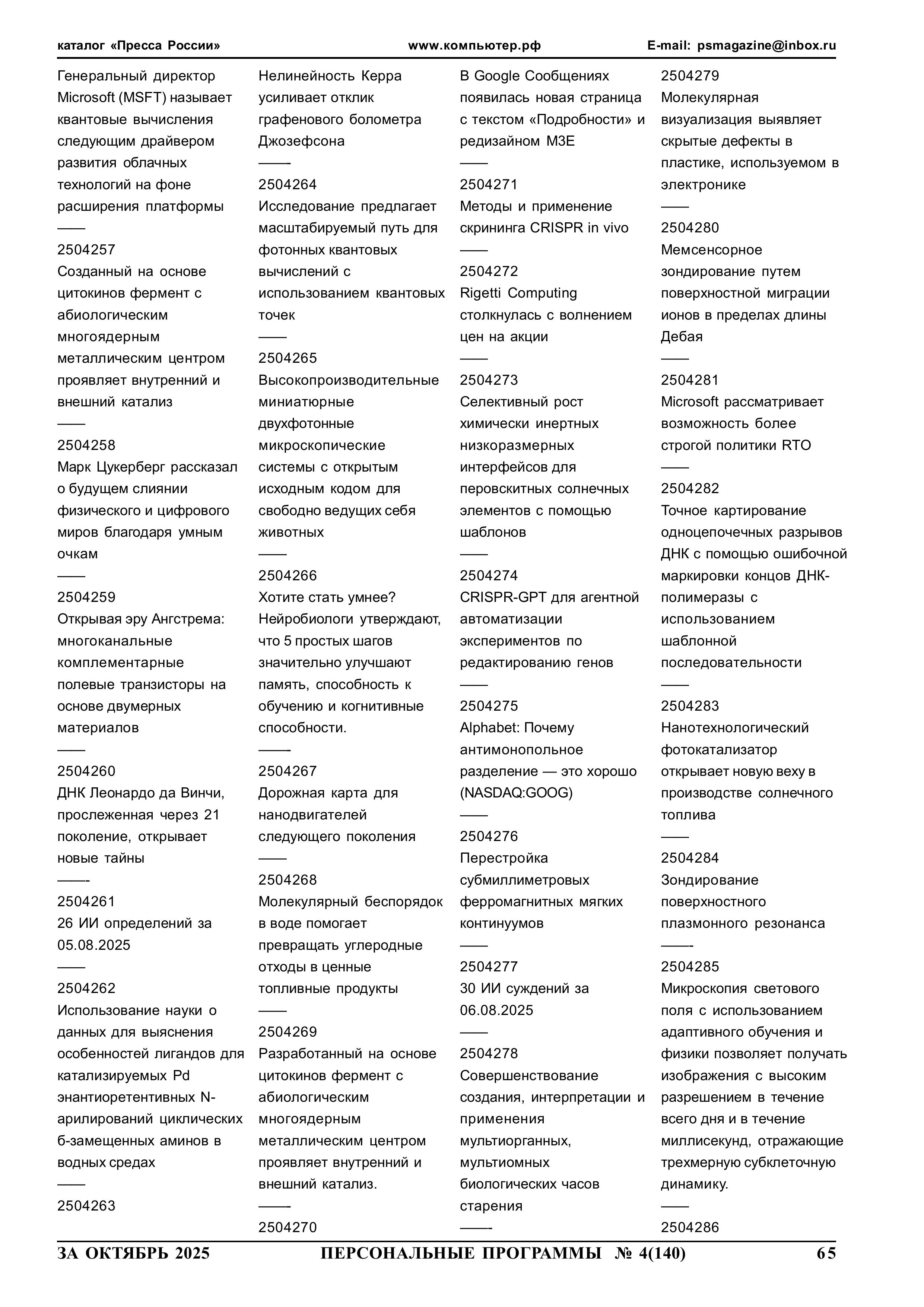 254065 yyNppp [ггNстр] Еженедельный журнал Персональные программы. Компьютер на флешке 2025-07-30