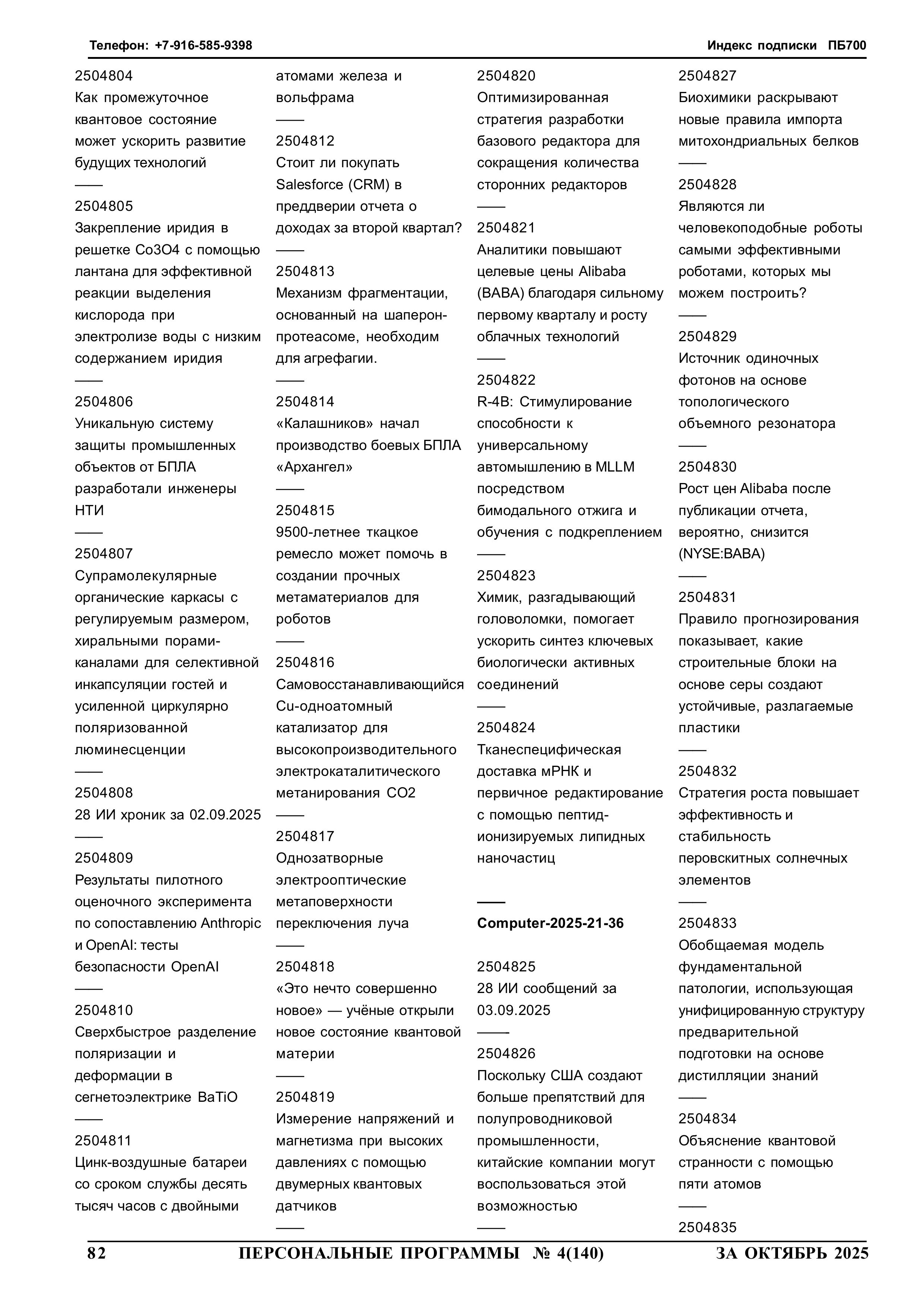 254082 yyNppp [ггNстр] Еженедельный журнал Персональные программы. Компьютер на флешке 2025-09-10