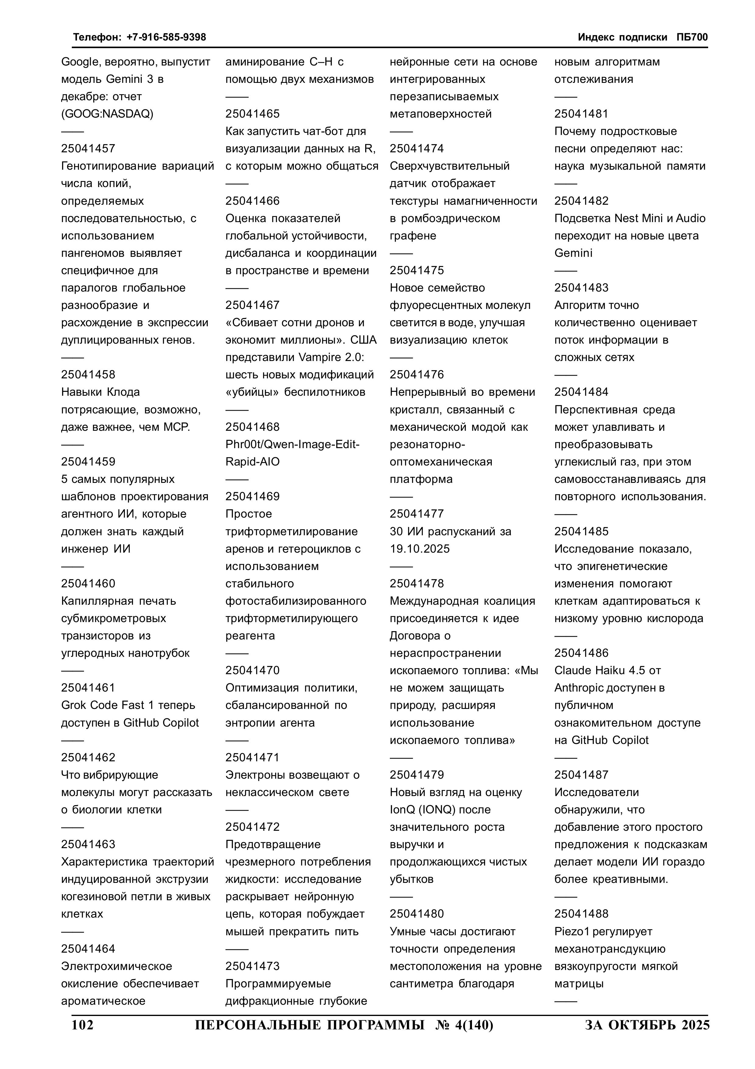 254102 yyNppp [ггNстр] Еженедельный журнал Персональные программы. Компьютер на флешке 2025-10-22