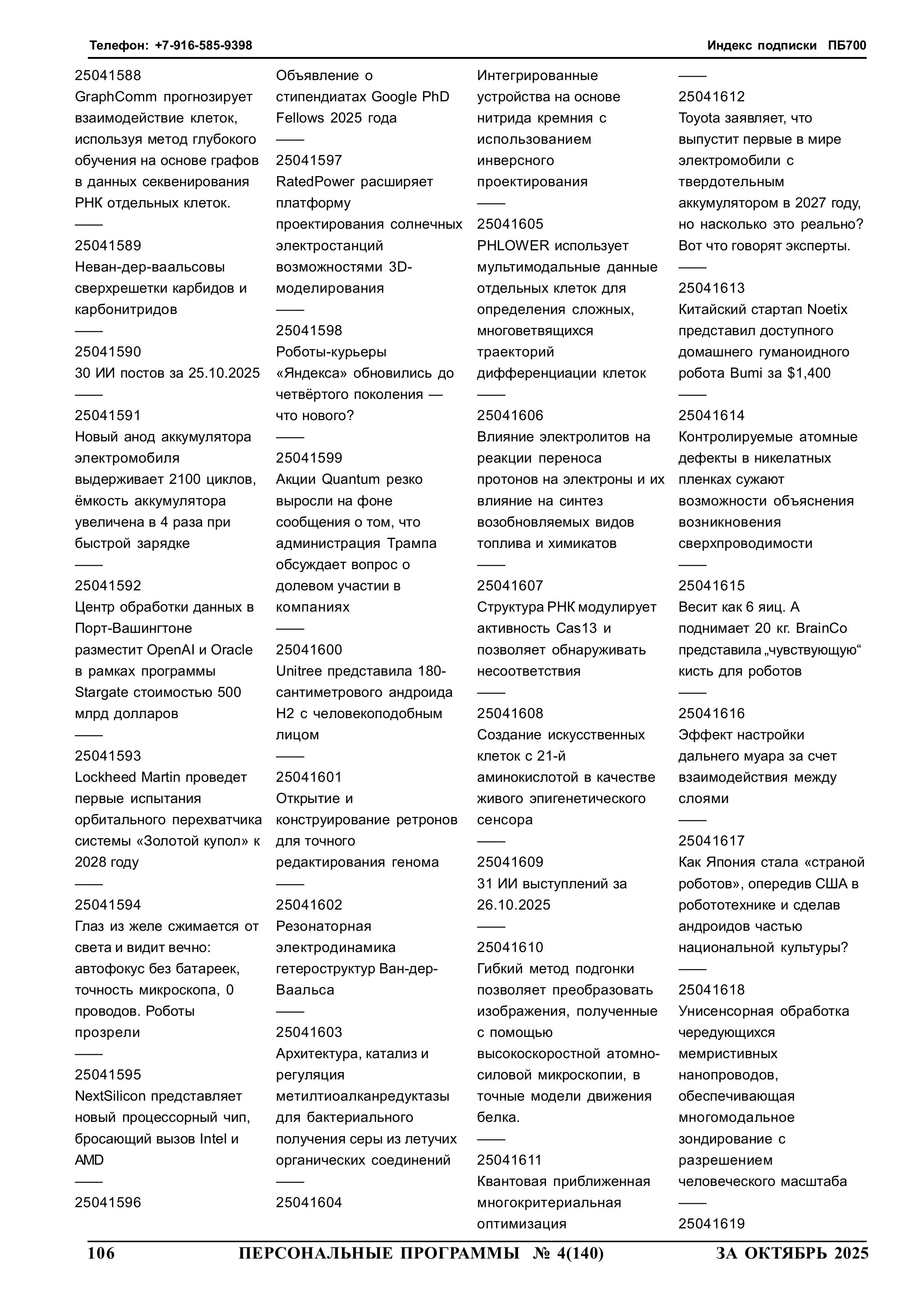 254106 yyNppp [ггNстр] Еженедельный журнал Персональные программы. Компьютер на флешке 2025-10-29