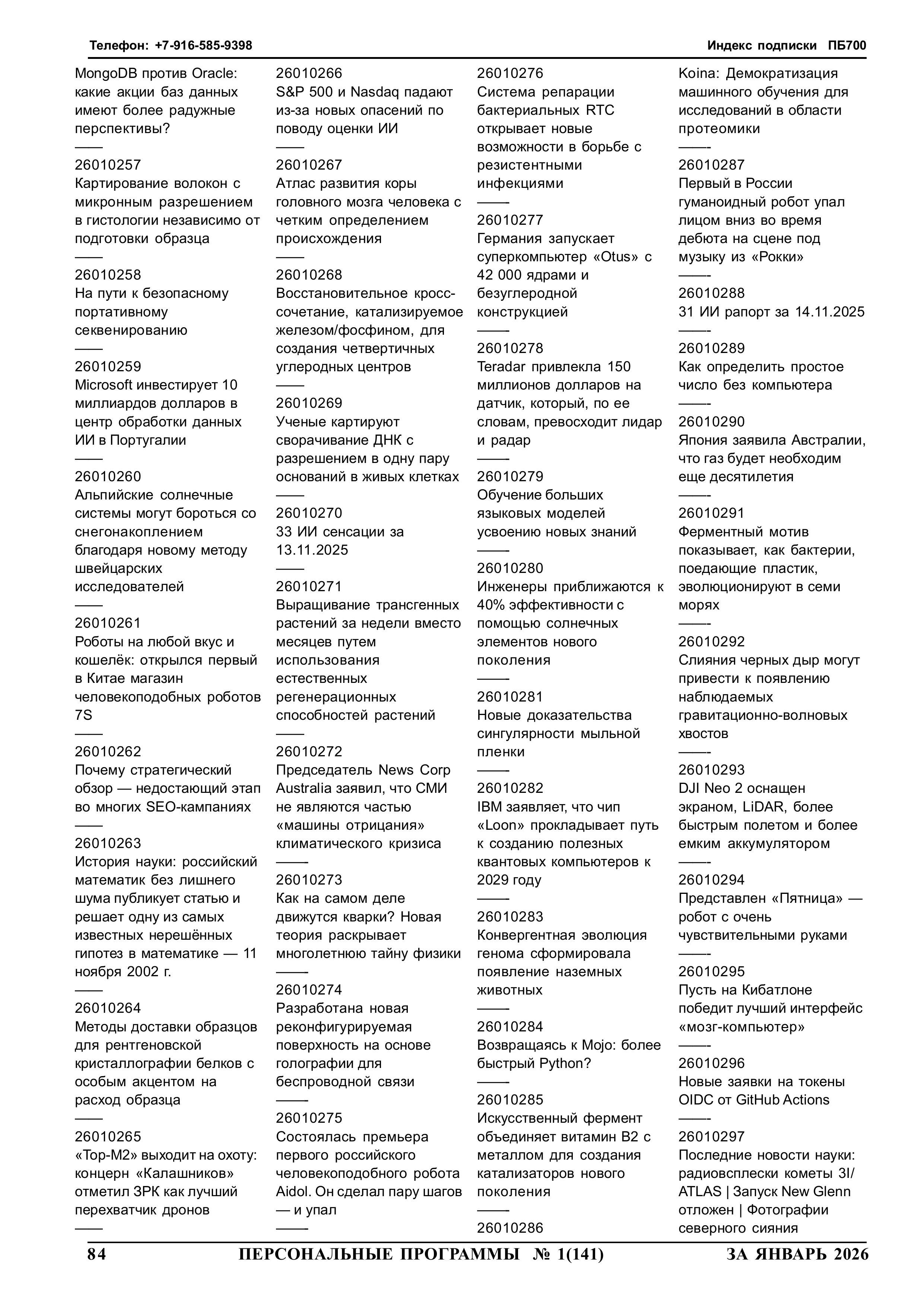 Еженедельный журнал Персональные программы. Компьютер на флешке Персональные программы 2026 год № 1 стр. 084 Компьютер № 32 за 46 неделю 2025 года