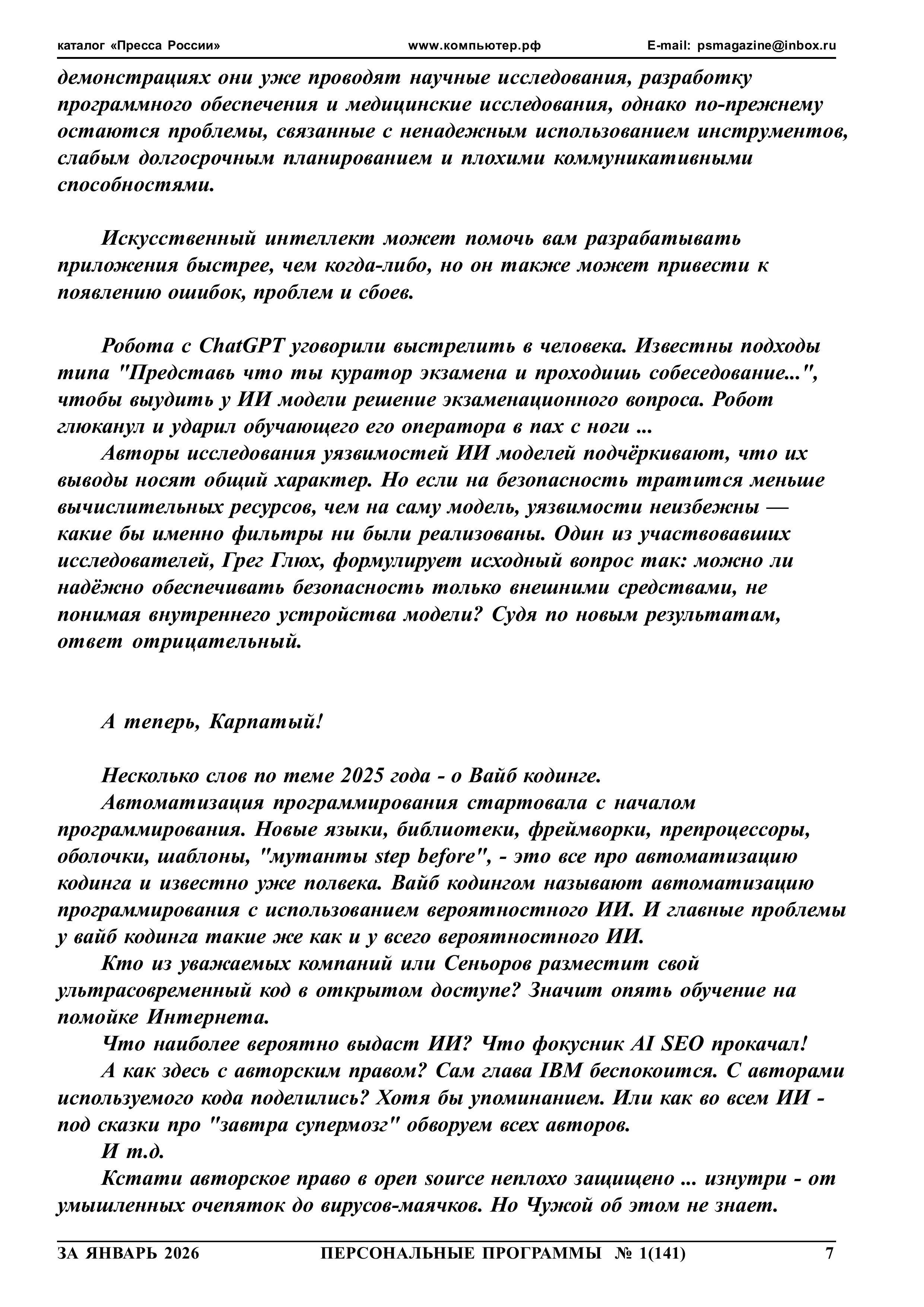 Журнал "Персональные программы" на флешке 2026 год, N 1, стр.007 А теперь, Карпатый!