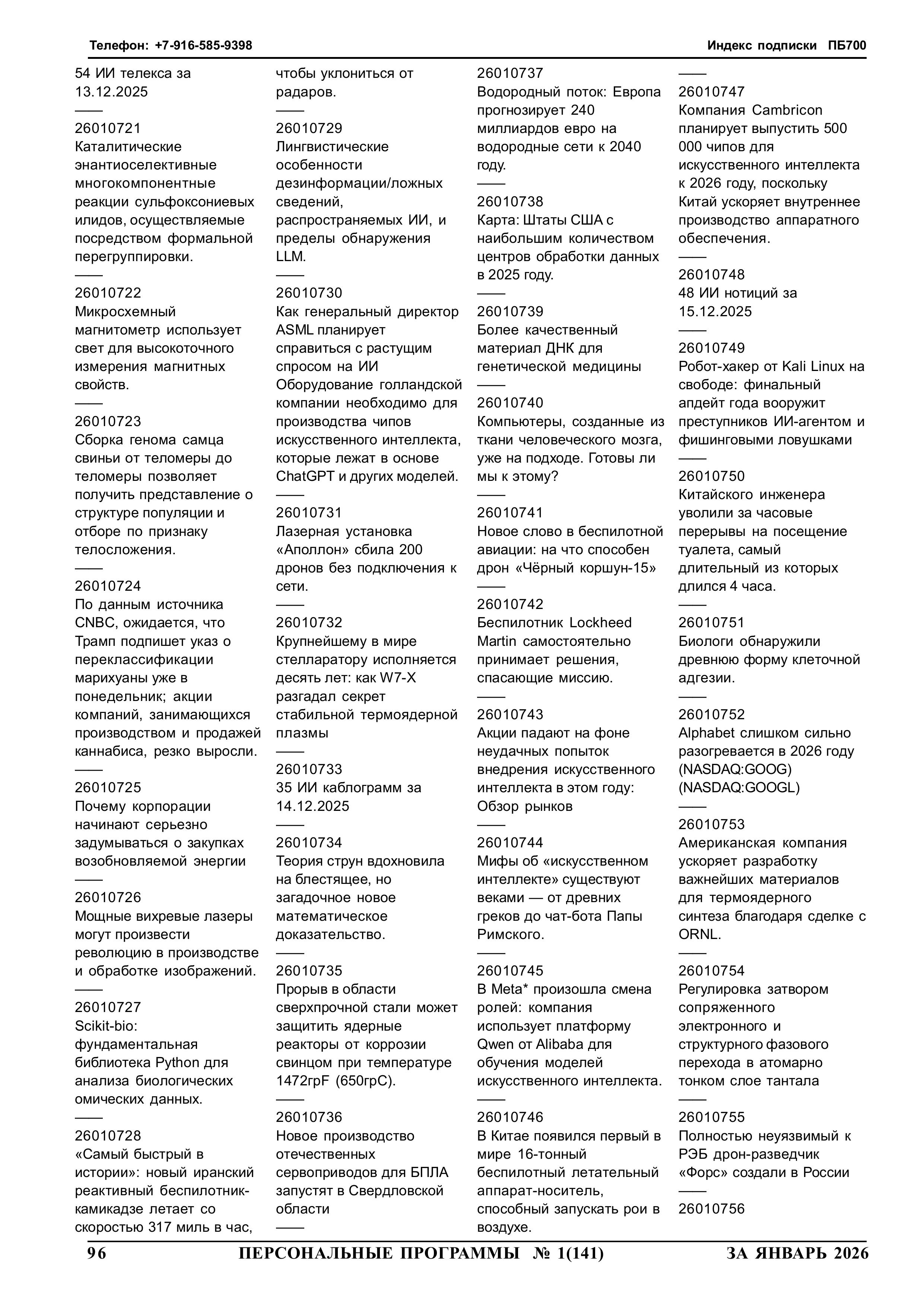 261096 yyNppp [ггNстр] Еженедельный журнал Персональные программы. Компьютер на флешке 2025-12-17
